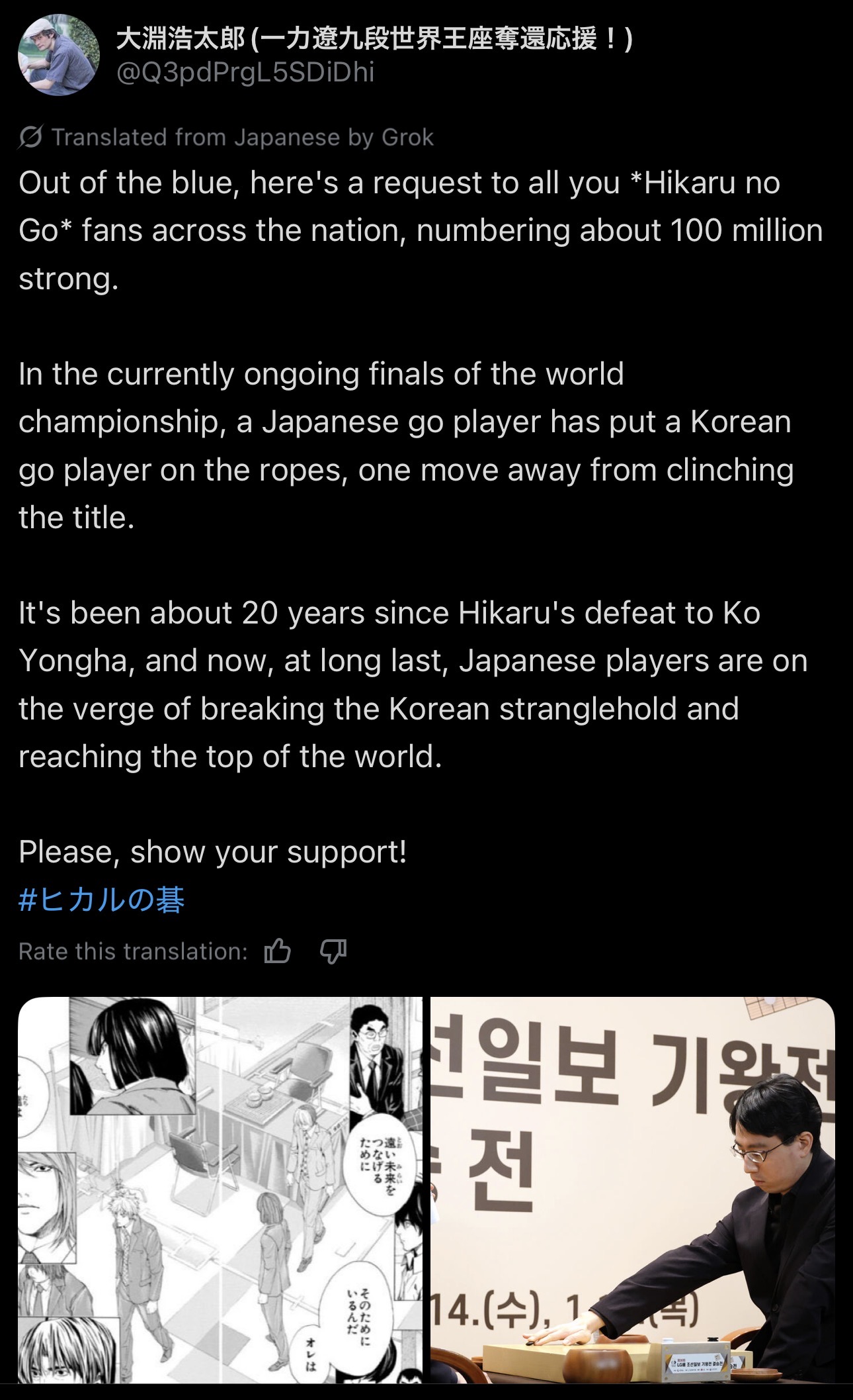 I think Ichiriki is on a different level when the time setting is longer. LG Cup and Ing Cup are probably very suitable for him. LG Cup has a shorter byo-yomi so we have to see how that goes though.