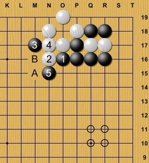 What now? Both A and B do not seem to me like great results for White and Black’s moyo is one move away from being quite hefty…