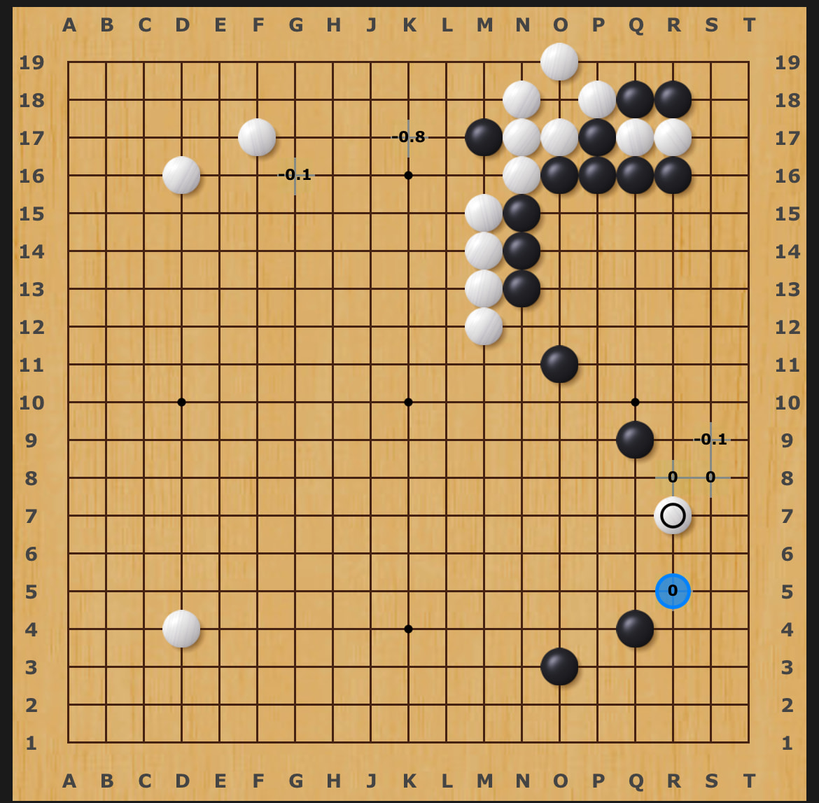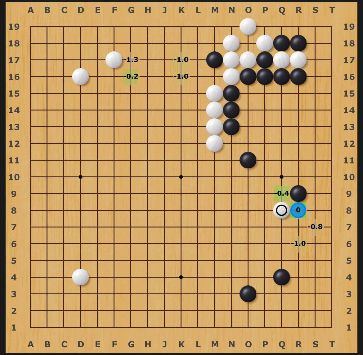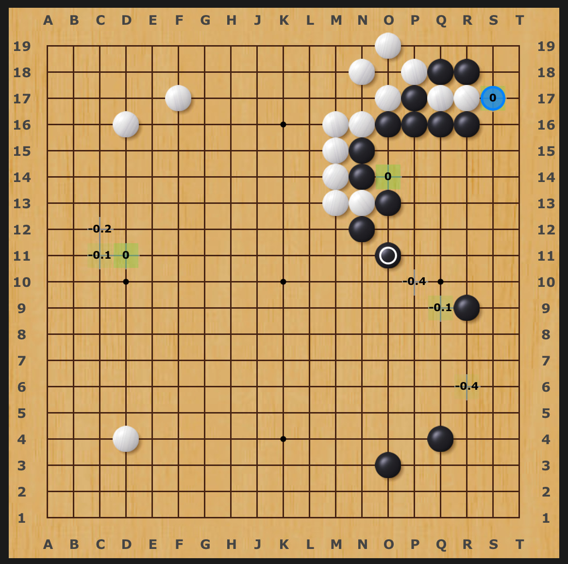 If white didn’t have a stone on the upper left it would be terrible, but here it’s W+6