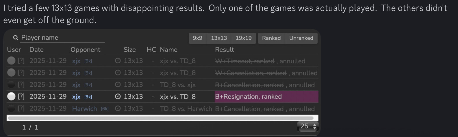 b)sometimes people cancel because the other player has forgotten he has a game open and was not fast enough to play a move but then they would like to play a game right afterwards