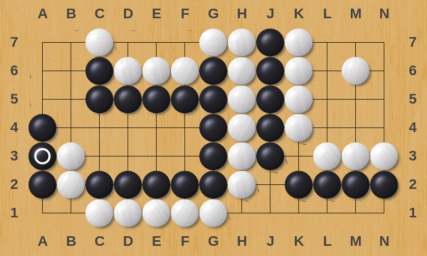 (one of the things I like about these whole-board capture go problems is that there is never any ambiguity about the goal. In regular go problems, beginners are sometimes confused about whether ko or seki are good enough solutions to a problem. For a capture go problem, as I’ve defined them here, the goal is to win the game. If you could play the position against an opponent and win every time, you’ve solved the problem. Otherwise keep looking. No ambiguity about what counts as “good enough”