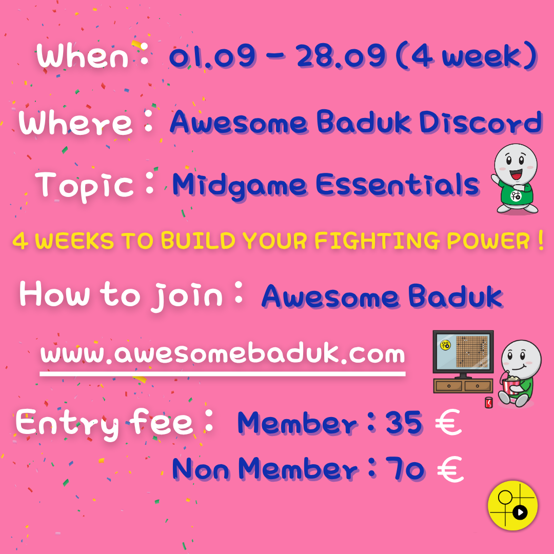 Study together with other enthusiastic Go players. Check out the details of the upcoming challenge by Cho Yeonwoo 2p who will help you improve your midgame skills. One day left to register!