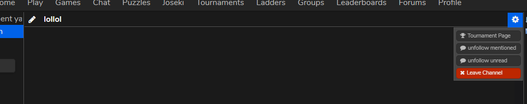 Because it makes more sense for the edit button to be close to the edited text. Currently it’s way too much space between. And cross on the right would make sense because leaving channel is a rare action so having it away on the right is ok (in my experience the cursor is usually on the left side of the screen on chat page). (I must admit, I pressed the cross accidentally several times when playing around on beta, I think I wanted to cancel topic edit or something). - Here’s better idea. Replace the cross with a cog. And when pressed show that menu with tournament page and stuff.
