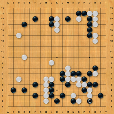 M2. Yes, Black is threatening to capture the two stones Q3. That’s not small in terms of points, but Black is already safe in the corner. On the other hand, M2 defends White’s group while attacking Black’s eyespace, this is more valuale than defending Q3.