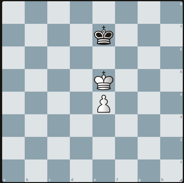 When it’s black to play, black is forced to play either Kd8 or Kf8, which white can answer with Kf7 or Kd7 and then push the pawn.