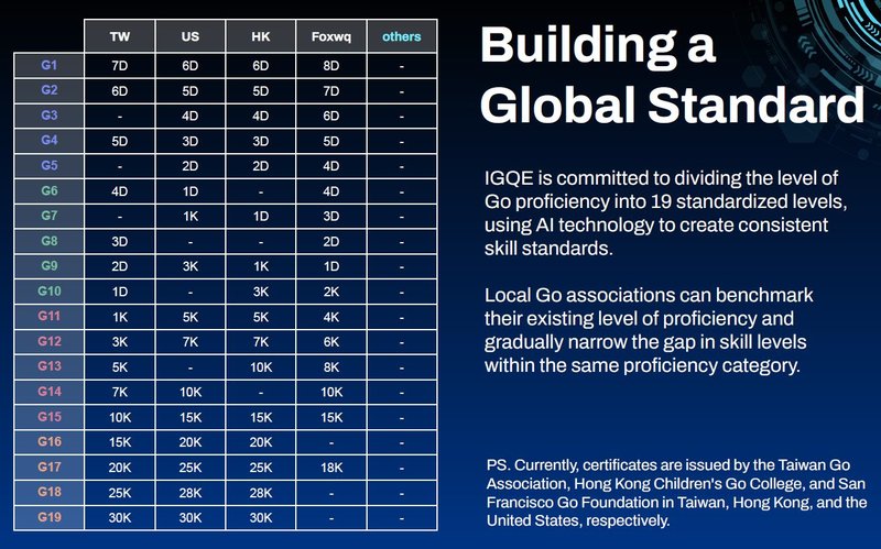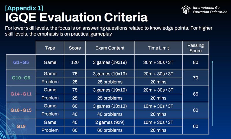 IGQE is a standardized, AI-supported certification system that assesses your Go level across 19 internationally recognized ranks (G19 to G1). Successful participants will receive an official certificate in English.