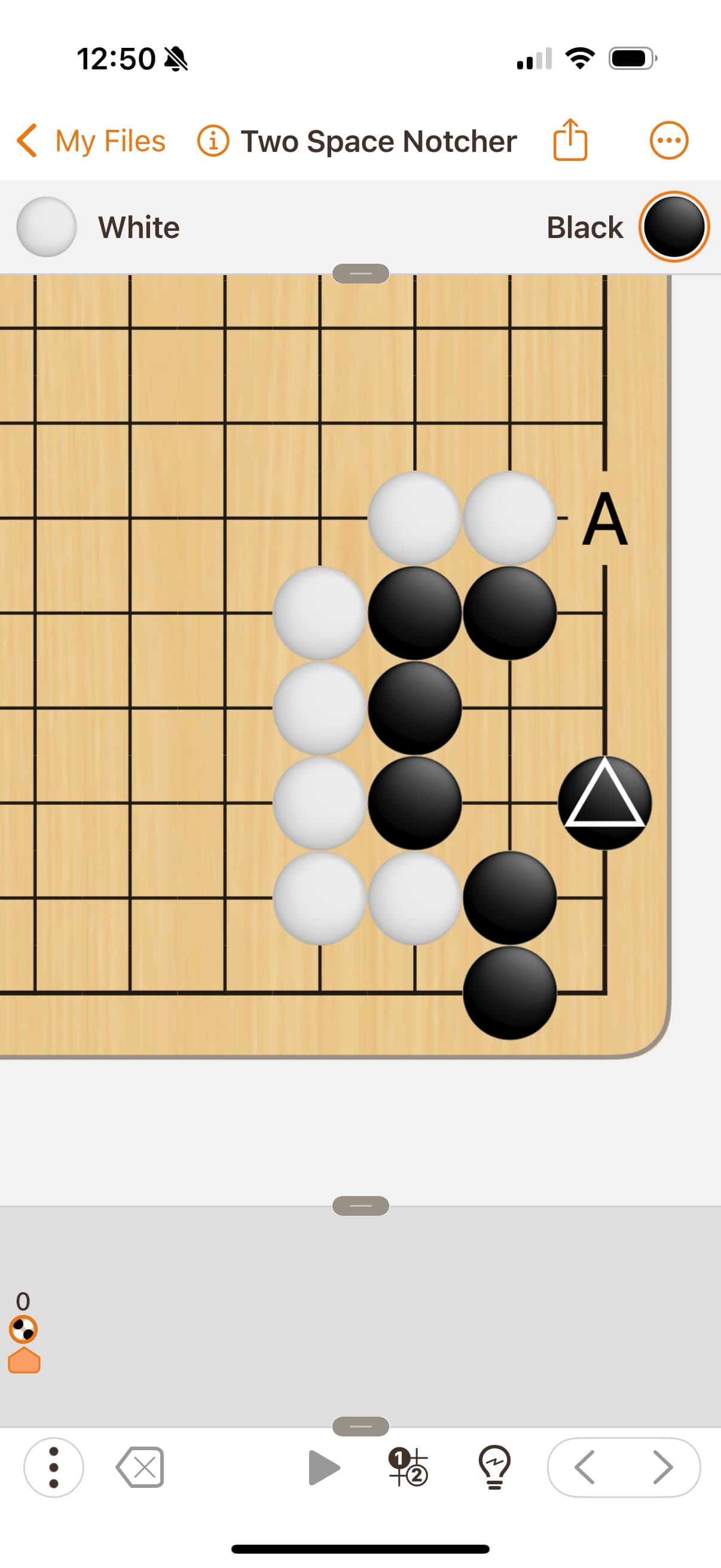 I’m going through James Davies’ Life and Death book and have a question about Problem 1 from Chapter 7 (two-space notchers). The question asks the status of the group. The answer is given that black can live if playing first, and white can kill if playing first. The answer shows black to live if plays at “A”. However, I can’t see why playing at the marked triangle doesn’t also work. To be clear, I placed the black piece with triangle and think it should make the group alive. Can someone prove me wrong? I’ve embedded the picture and sgf file. Thanks!!