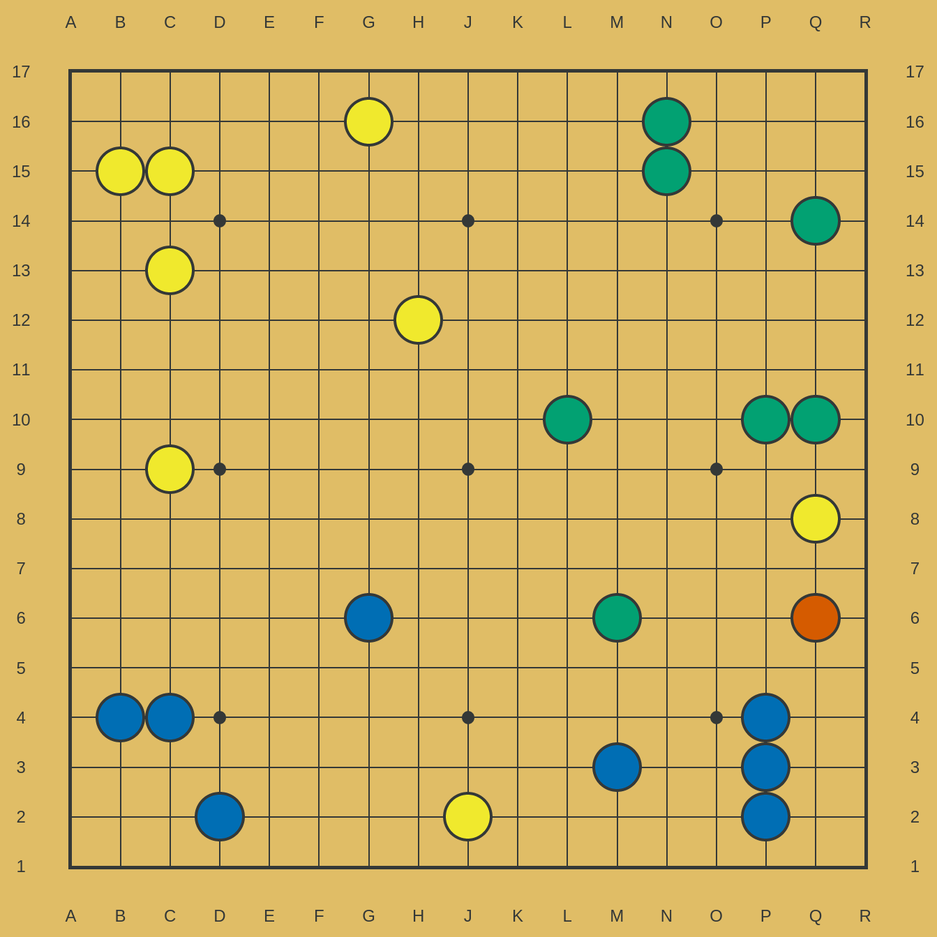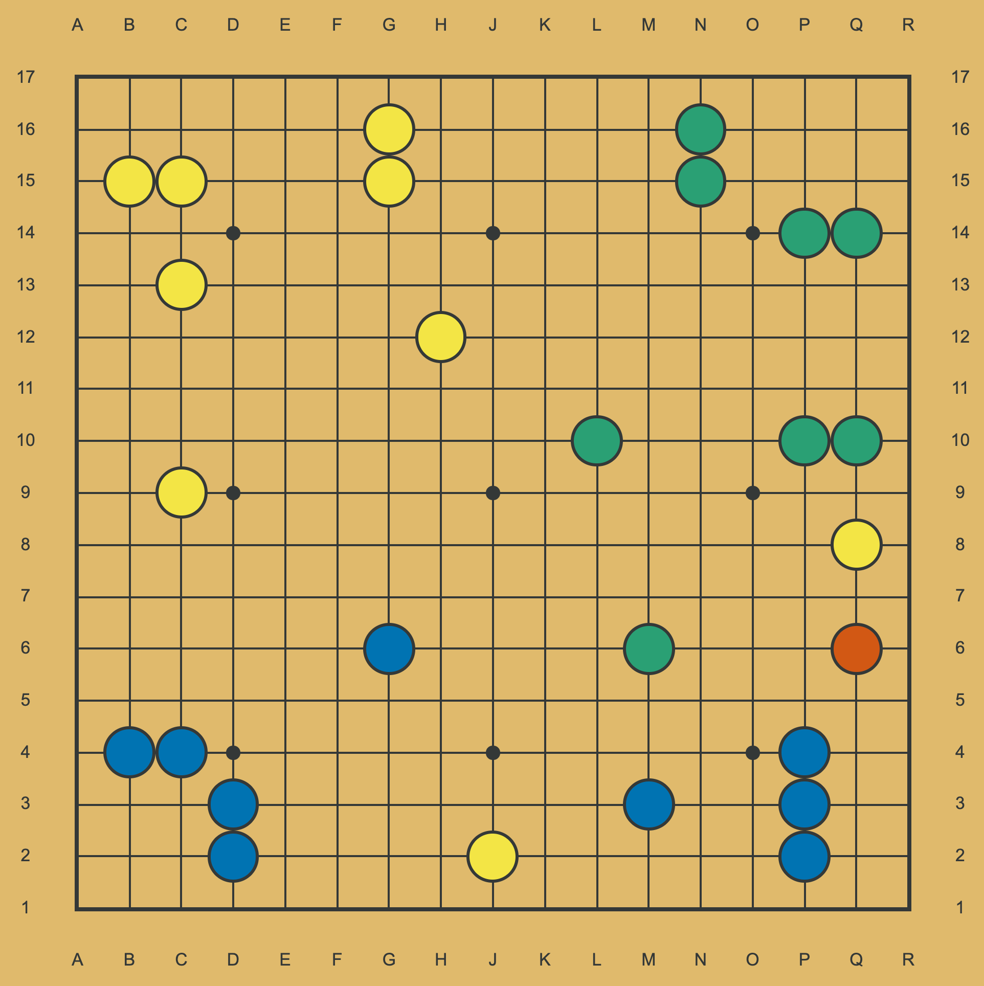 I think we really need to be careful about the corners primarily at this point, and any single stones close to the border secondarily. I wish to make D2 stronger, and would like to see Q14 to become stronger as well. G16 looks vulnerable as well. J2 should not be in immediate danger, since it wasnāt known yet that this stone would exist the move before last.