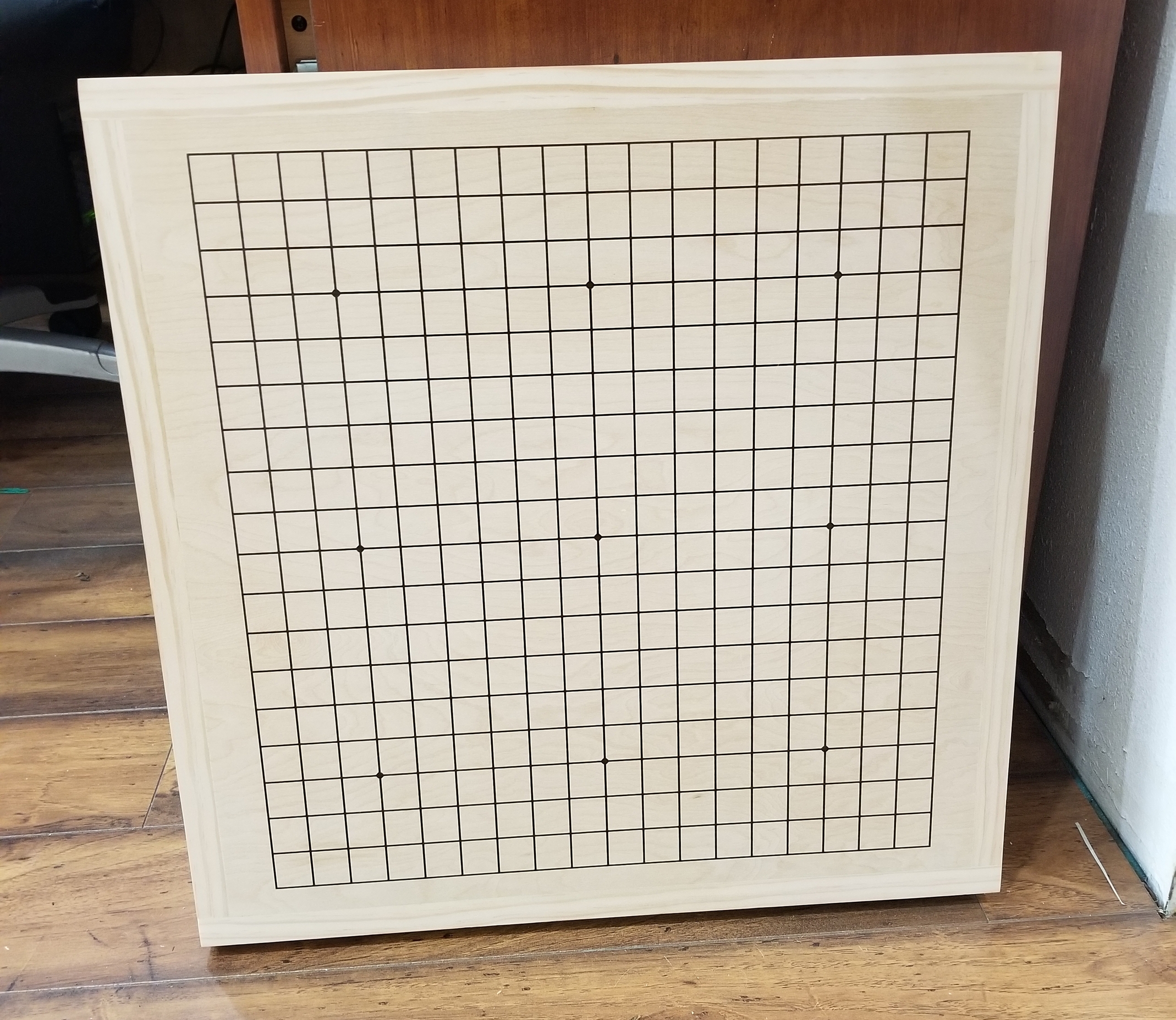 Time for a pic-heavy update. I got the grid printed with 1mm lines, 4mm Hoshi points and traditional Japanese cell sizes (changed my mind at the last minute).