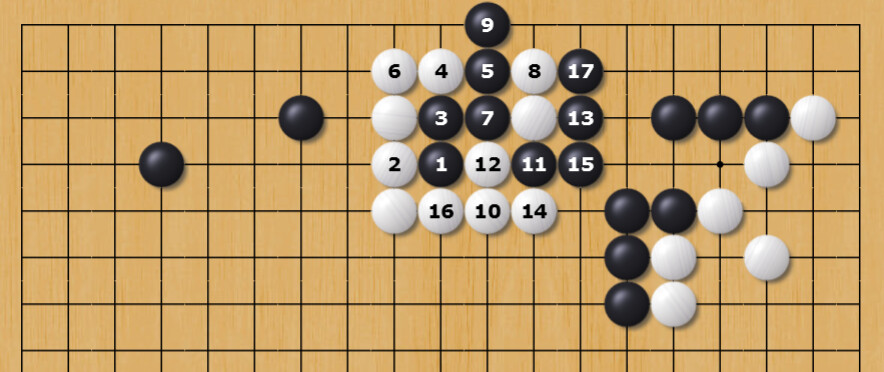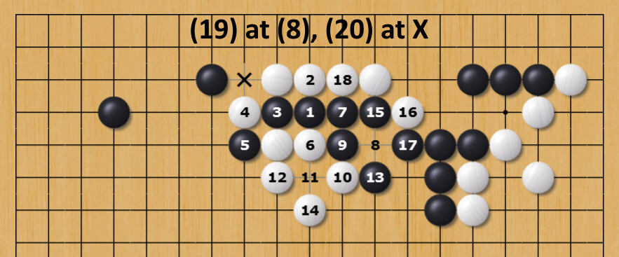 Another potential follow-up move for black is to attach on top at M16, which is usually played if black can make a large moyo on the right (which is not the case here).