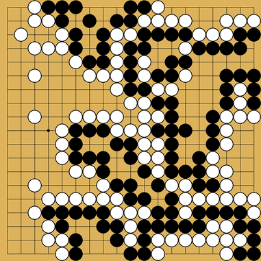 The clamp L3 (move 25) helped White create this split shape, which is bad for Black: