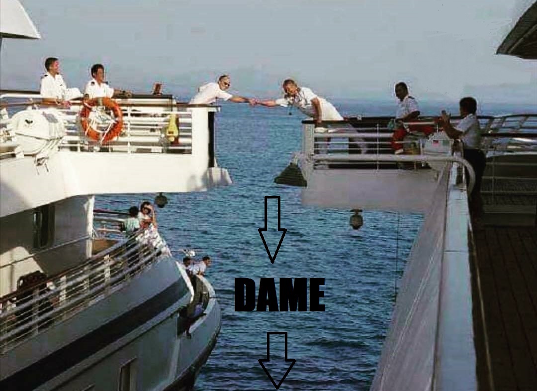 What? A dame fell into the sea and those seamen are not even trying to rescue her?