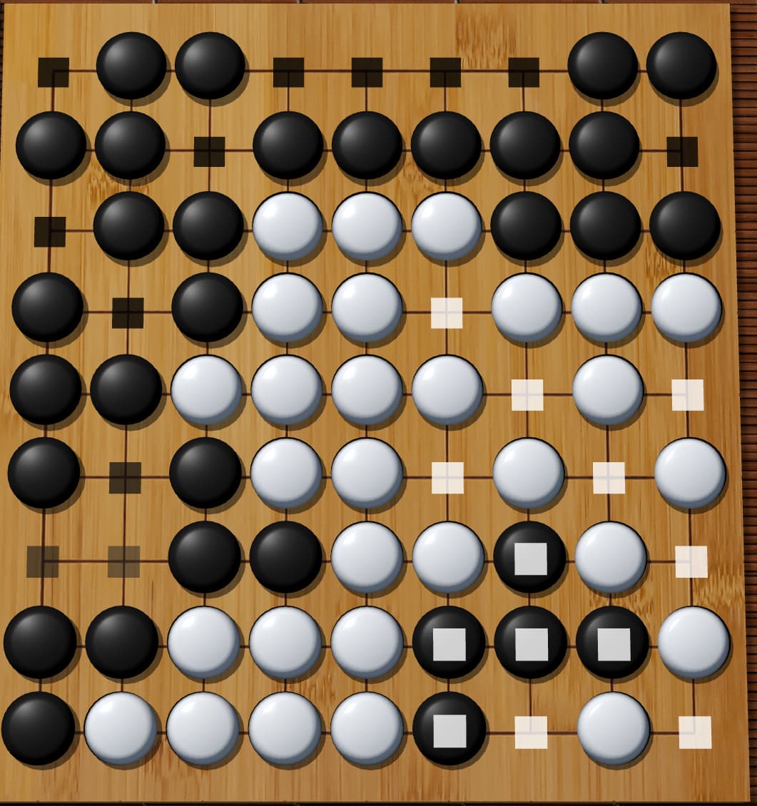 So here you went to scoring an unfinished game, and the bot did recognize it, seeing that the territory marks are grayed. It’s hard to decide how to automatically count an unfinished game anyway.