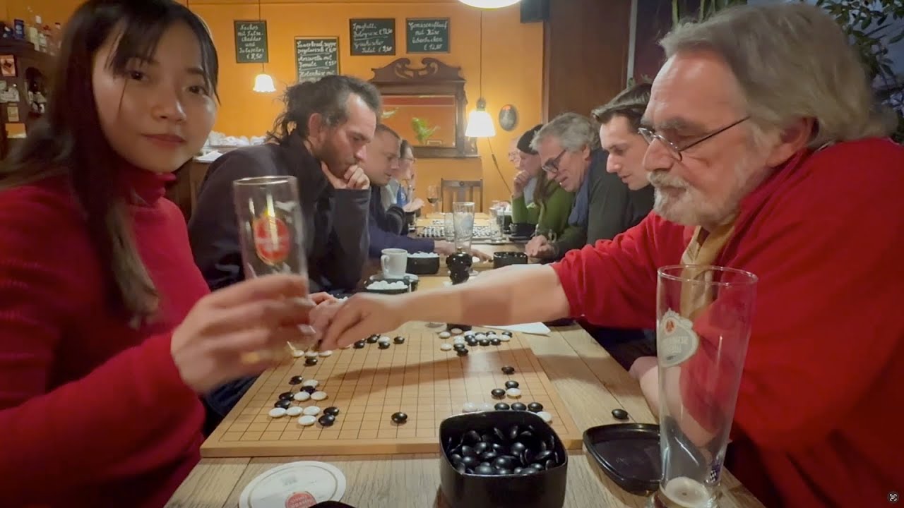 I noticed that she also posted a video of her visiting the go club in Eindhoven (NL). On a still in that video I spotted 2 players of the Tilburg go club (Ad and Olivier, both 3d EGF, she’s playing with Ad in that still, and Olivier is the one walking away from the camera):
