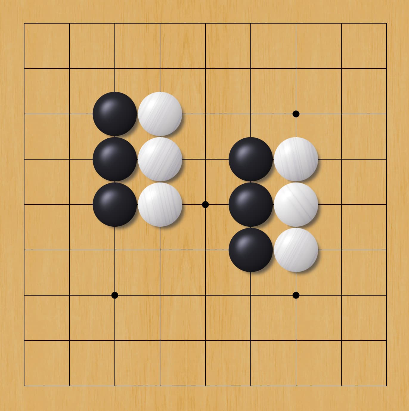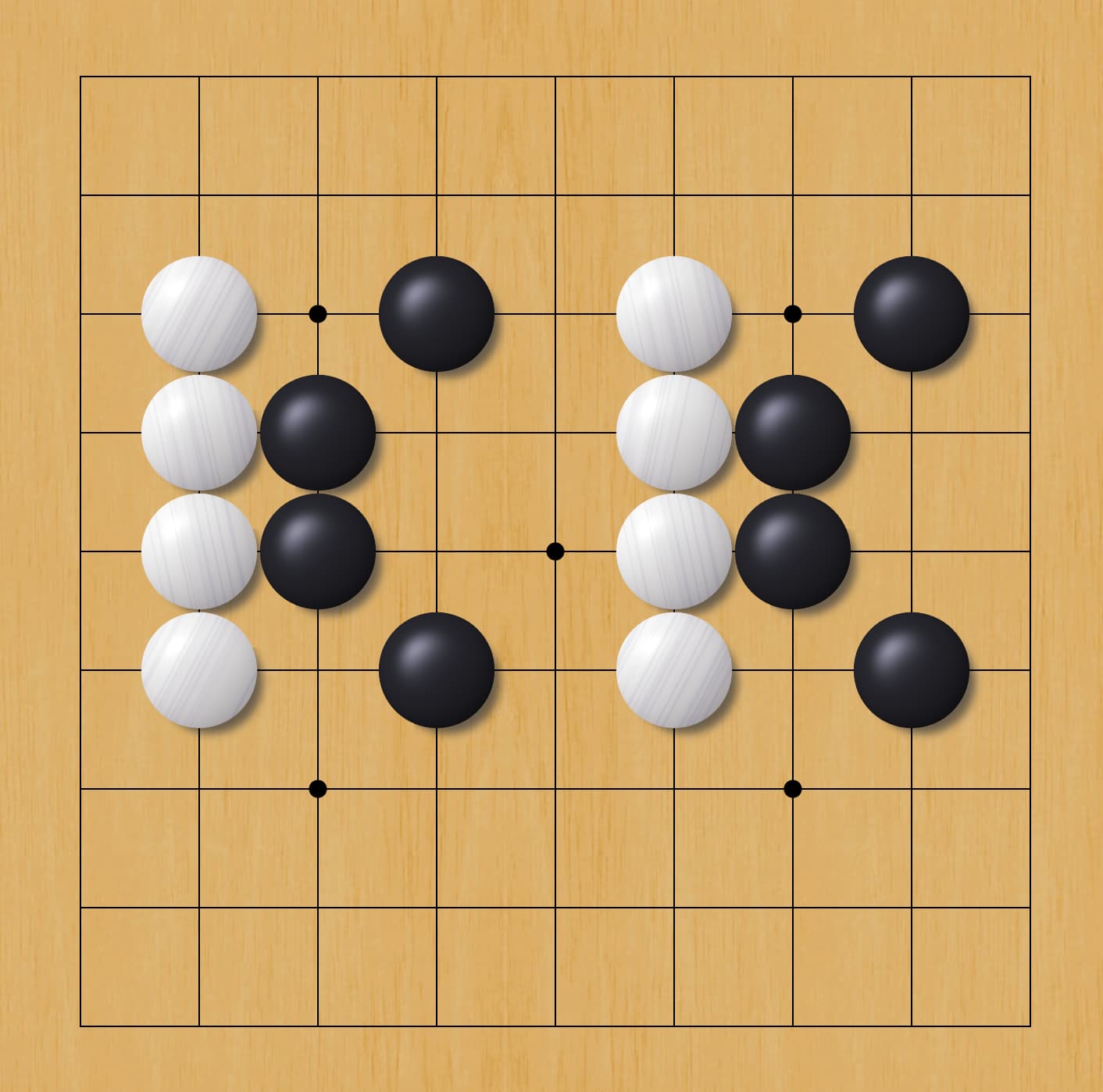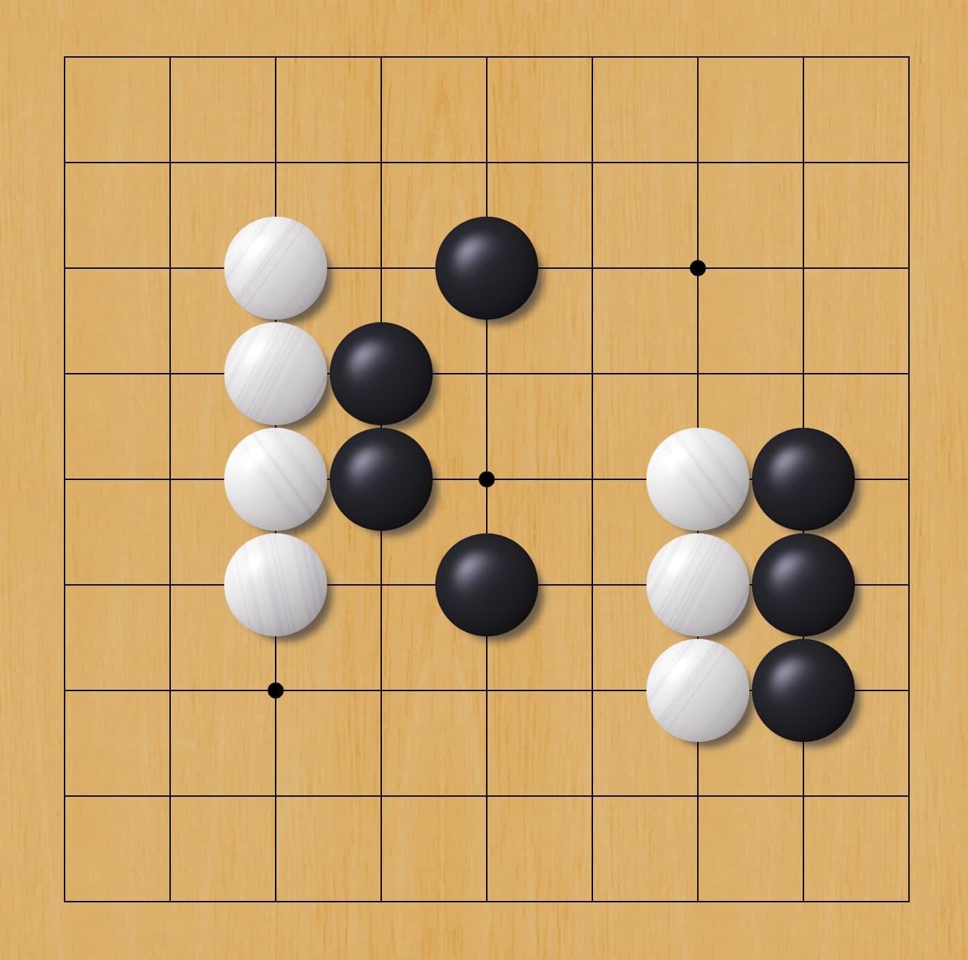 Either no black stones are touching white, all black stones are touching white or black has only one chain.