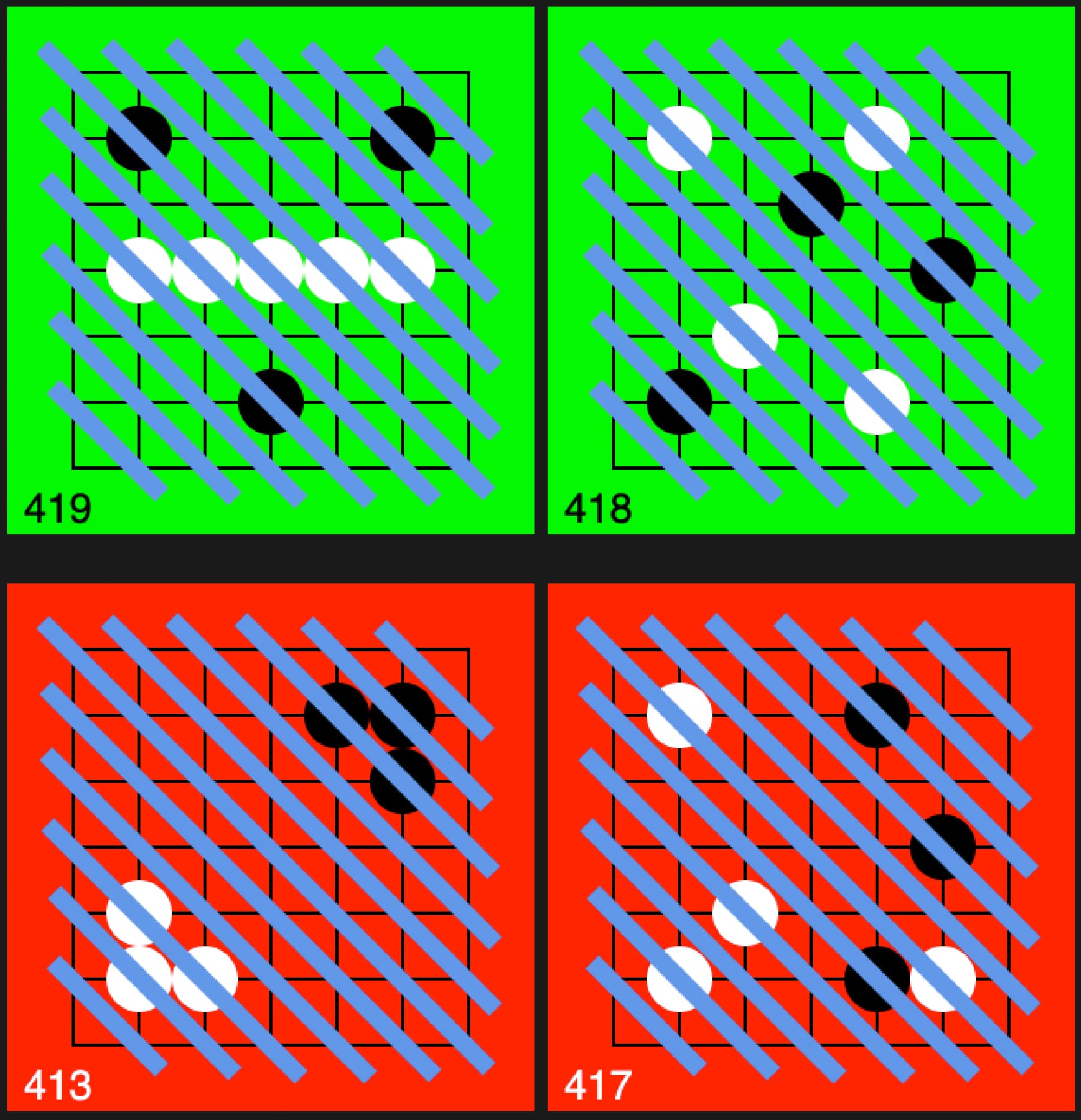 The rule was “it is possible to make a path from one corner to an opposite corner, such that the path avoids all stones of one colour”