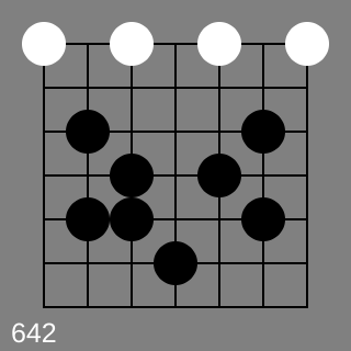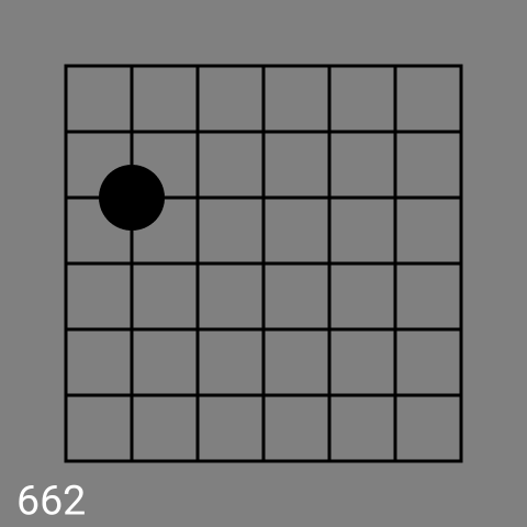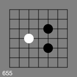 Ok so I looks like I have been on the wrong track here since 640 (only the four white stones) is green, and the empty board is green. But adding a single black stone to the empty board makes it red, while adding a black stone to the four stones stays green. That is not possible if there is some property of the black and white stones independently that has to be the same. What we have not checked so far is whether the color of the stones makes any difference at all. With the information we have it could be that the rule is colorblind. So let me check some green koans where I replace all stones by black stones