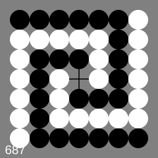 Red counterexample (using your definition of a 3 x 3 center on a 7 x 7 board):