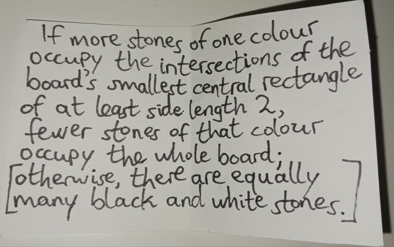 (On a square board, a rectangle of tengen + 1 intersection wouldn’t be central, even if I had allowed for rectangles of 2 x 1 intersections. (In any case, only square koans with uneven side lengths were submitted.))