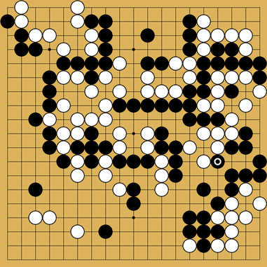 If white doesn’t like the way that turns out, rather than playing the attachment and then backing off, white should just play a different approach in the first place. The two-space low approach is the most common way of handling black’s formation. The idea is to block black’s expansion on the top while still leaving enough room to invade on the left.