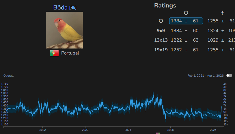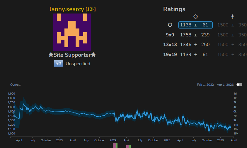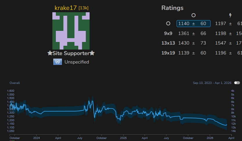 I also realize this thread is primarily regarding dan levels, but I donāt want to start a new thread. All of that said, I just want to post screenshots of some of some of my recent opponents. The trend seems to show for several mid-SDK, a downward trend beginning mid-2024 or 2025.
