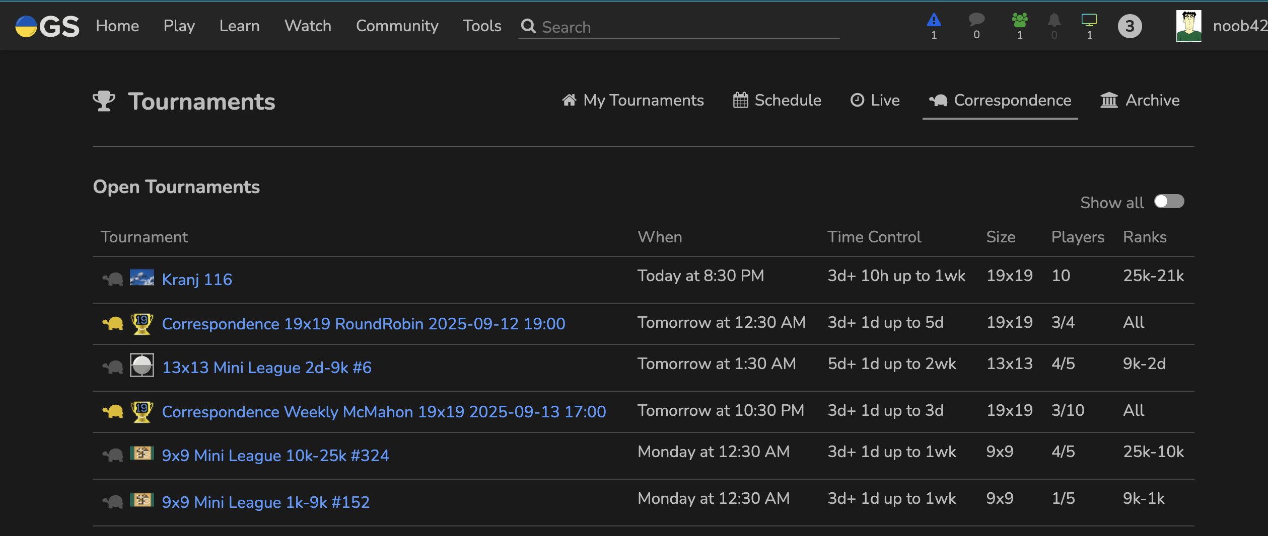 still one glitch remaining, which is that on the tournament page it doesn’t say “open”. Fix coming for that too. At least the list is correct now