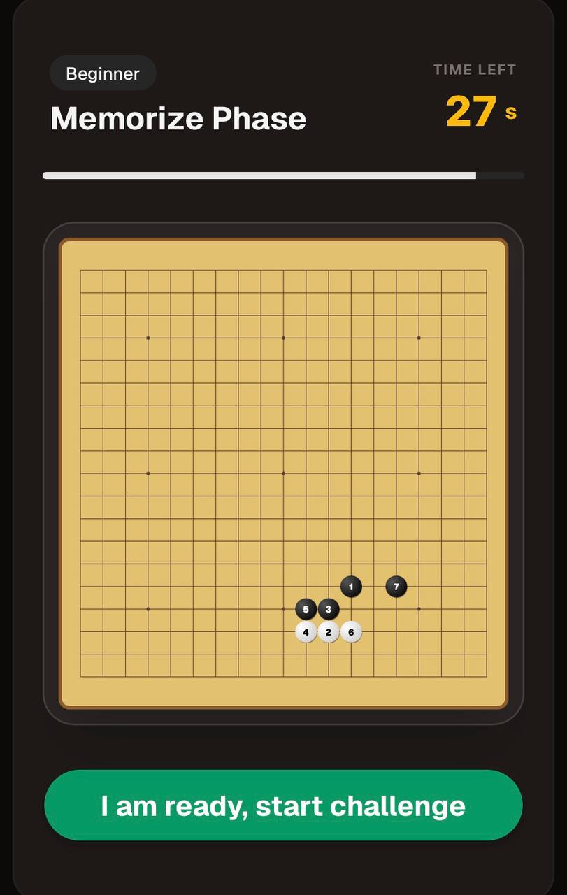 Memorize: You have up to 30 seconds to observe the positions of black and white stones on the board.