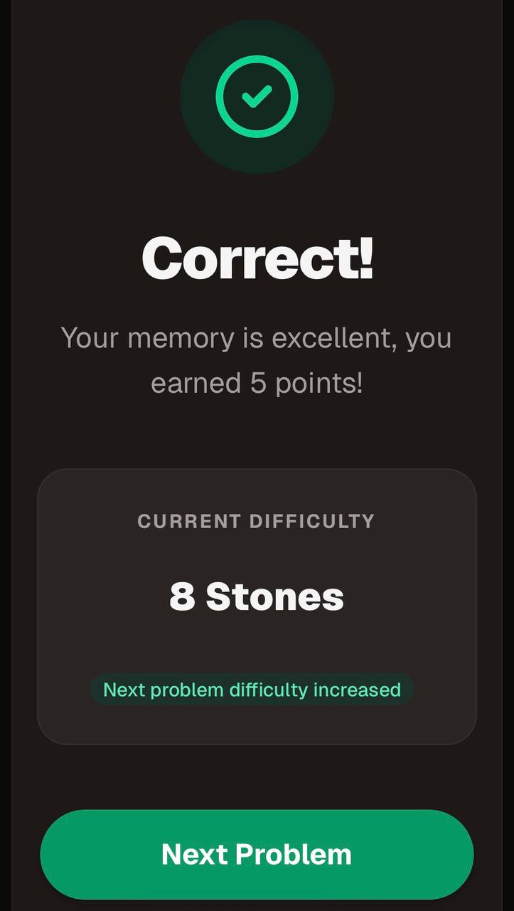 Adaptive Difficulty: The system automatically adjusts the number of stones based on your performance.