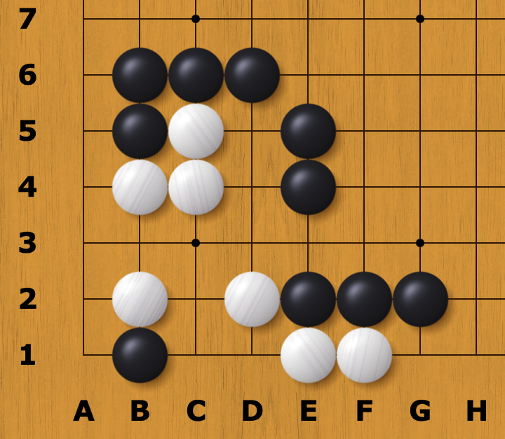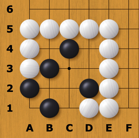Black G2 β White E2 β Black C1 β White A2 β Black F3 β White A1 atariβ¦ doesnβt work.