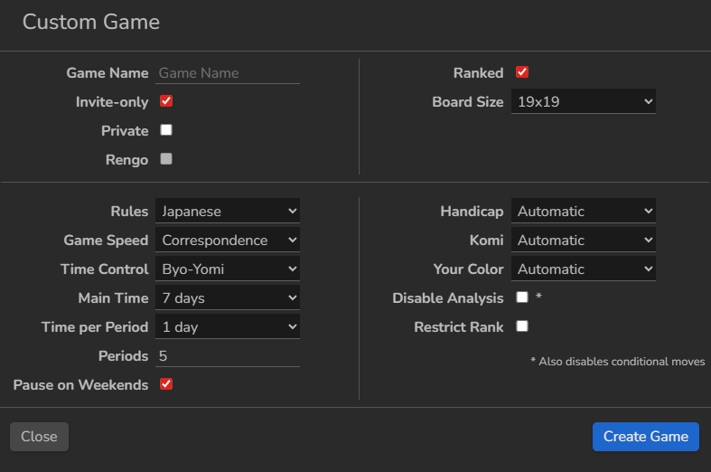 Today, I couldn’t use analysis in Ogs games, and I couldn’t click the “Review this game” button because it was disabled. The first thing I checked was the “always disable analysis” setting in my profile, which was turned off. Then, I tried creating two “invitation” calls and going to the main menu to see the settings for those calls. In one of them, I enabled the “disable analysis” option, but in the other, I didn’t. However, both windows showed that analysis was disabled. I don’t understand why this might be happening or how to fix it. Please help me)