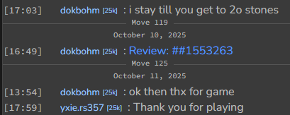 Just to pick a random example, in this game from a few months ago we can see that a review was opened by one of the players while the game was in progress: