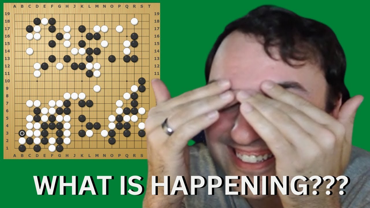 In game 117 (7 komi, NZ rules), move 45 got a 0.05 % rating from the policy network. After a lot of fighting, by move 185, KataGo realizes that black is at least 2 points ahead. White loses her will to live, and the game by at least 72 points.
