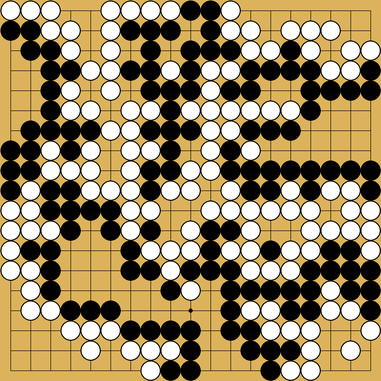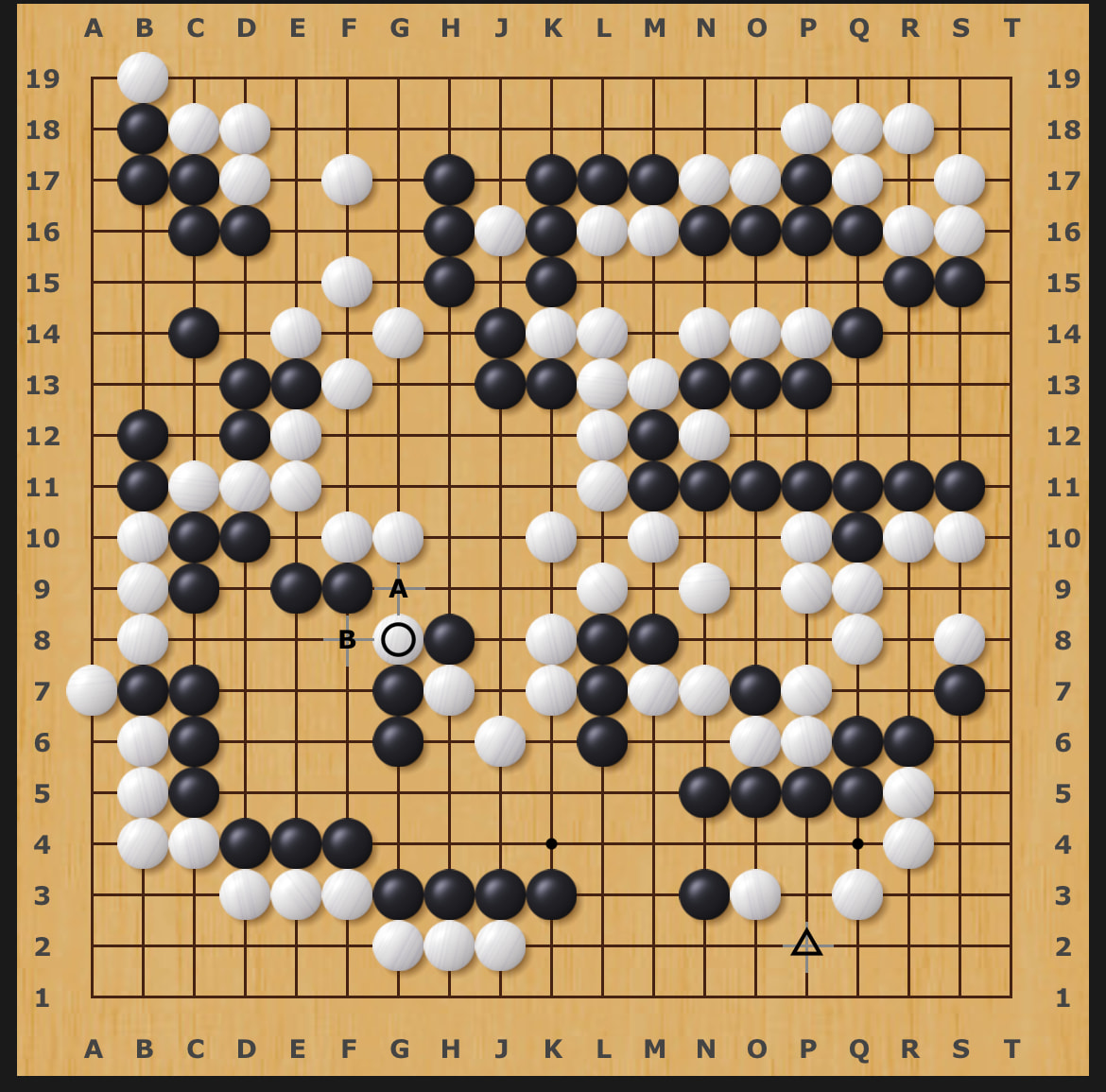 There might be a few more questions to ask around the middle here. If you get a couple of extra black stones you might be able to cut off white’s stone.