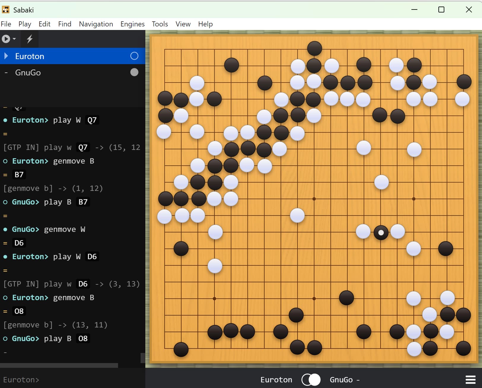- Defend territory. Euroton has no concept or incentive for territory. GnuGo does monkey jumps, and slides and just takes it all away.