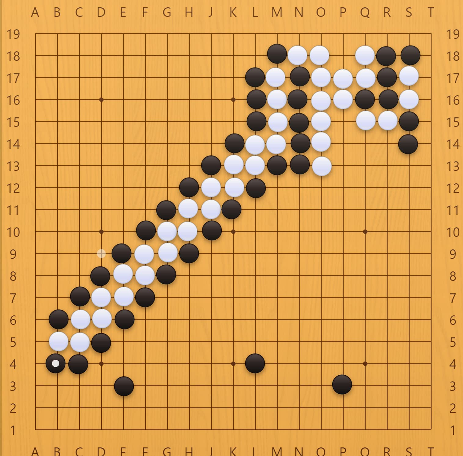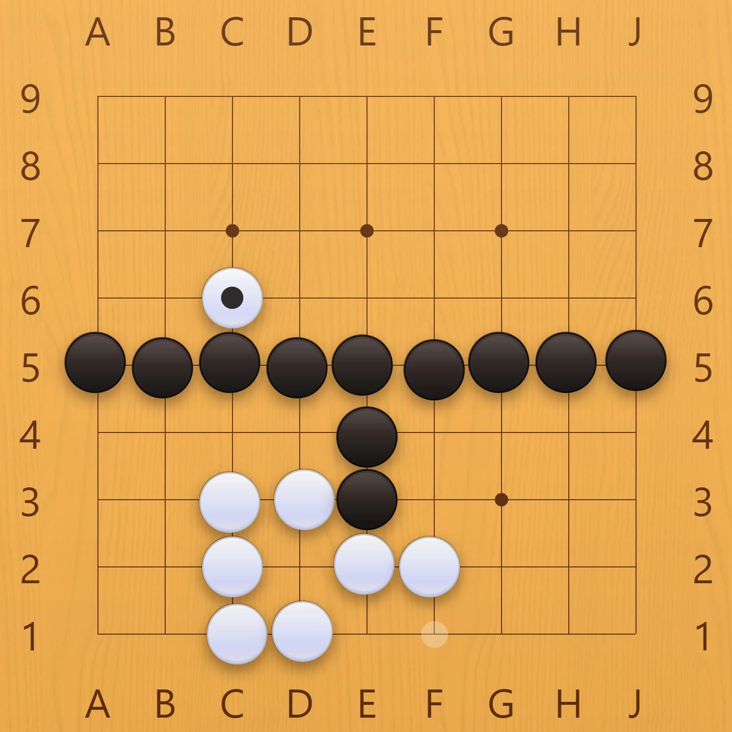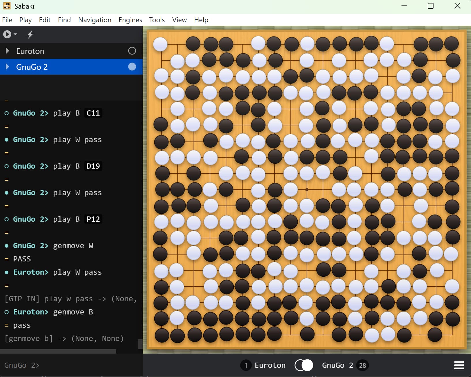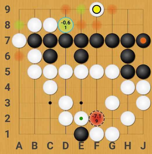 - Connect over distances. All these groups look at least decent, but Euroton only responds to losing liberties and 1 space cut/connect options. It doesn’t realise it’s slowly getting its groups cut off and surrounded.