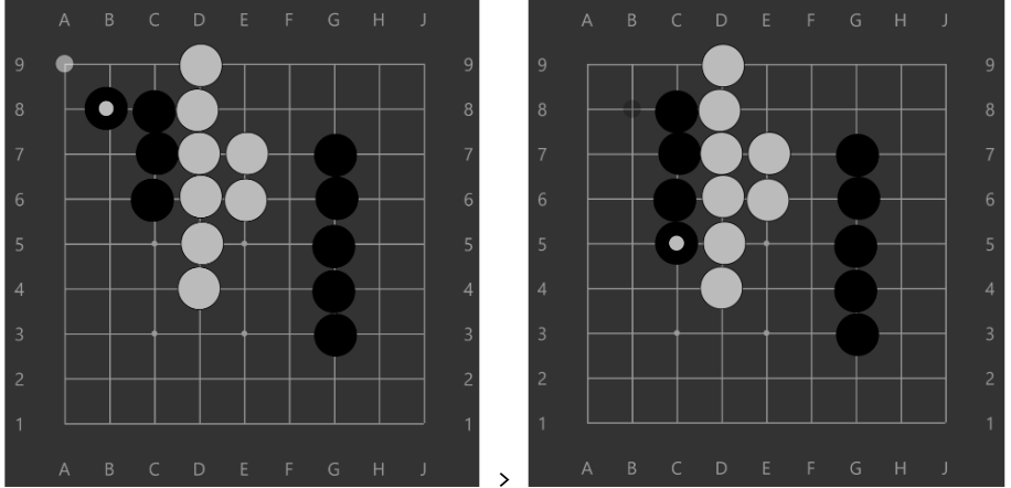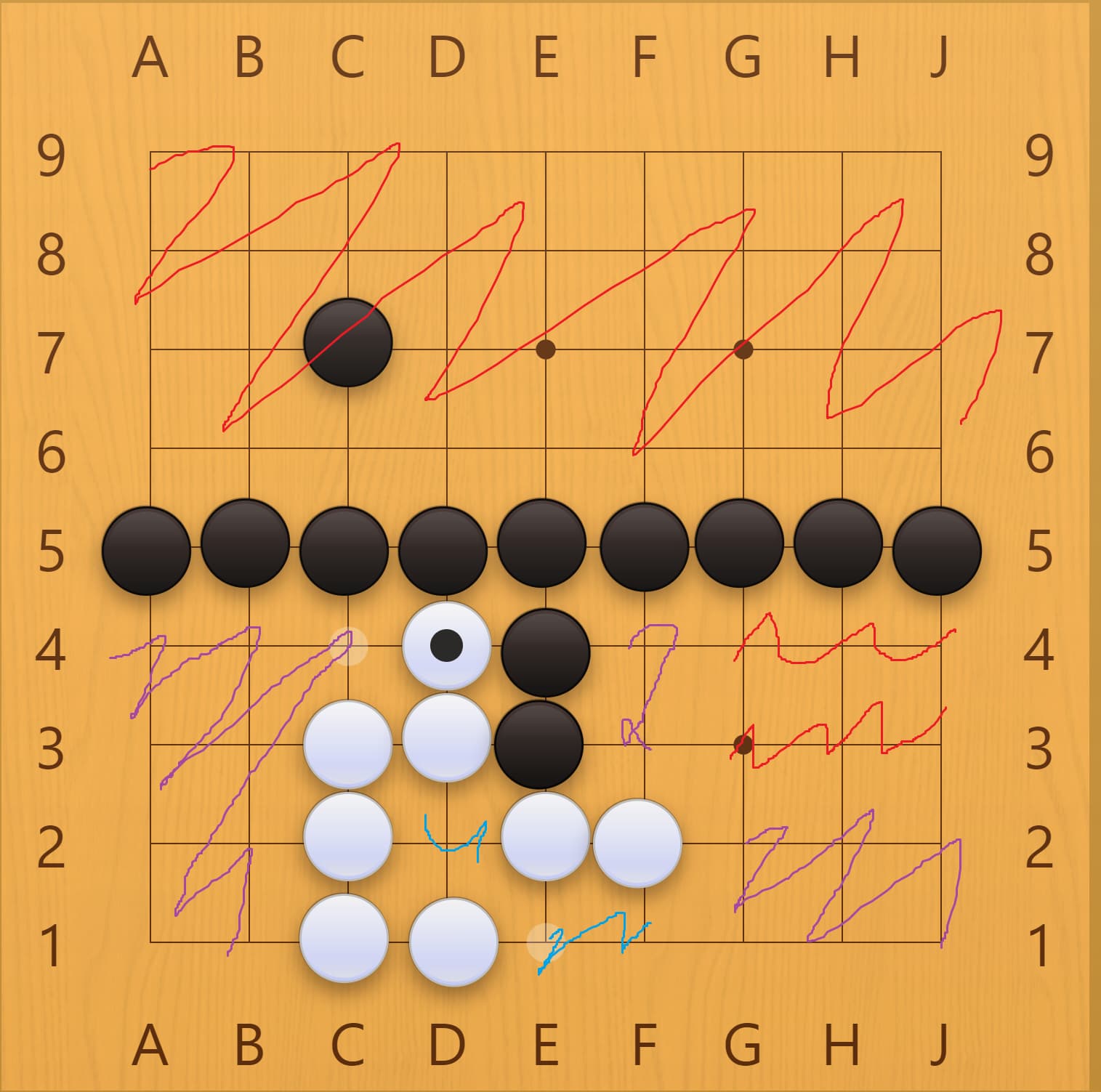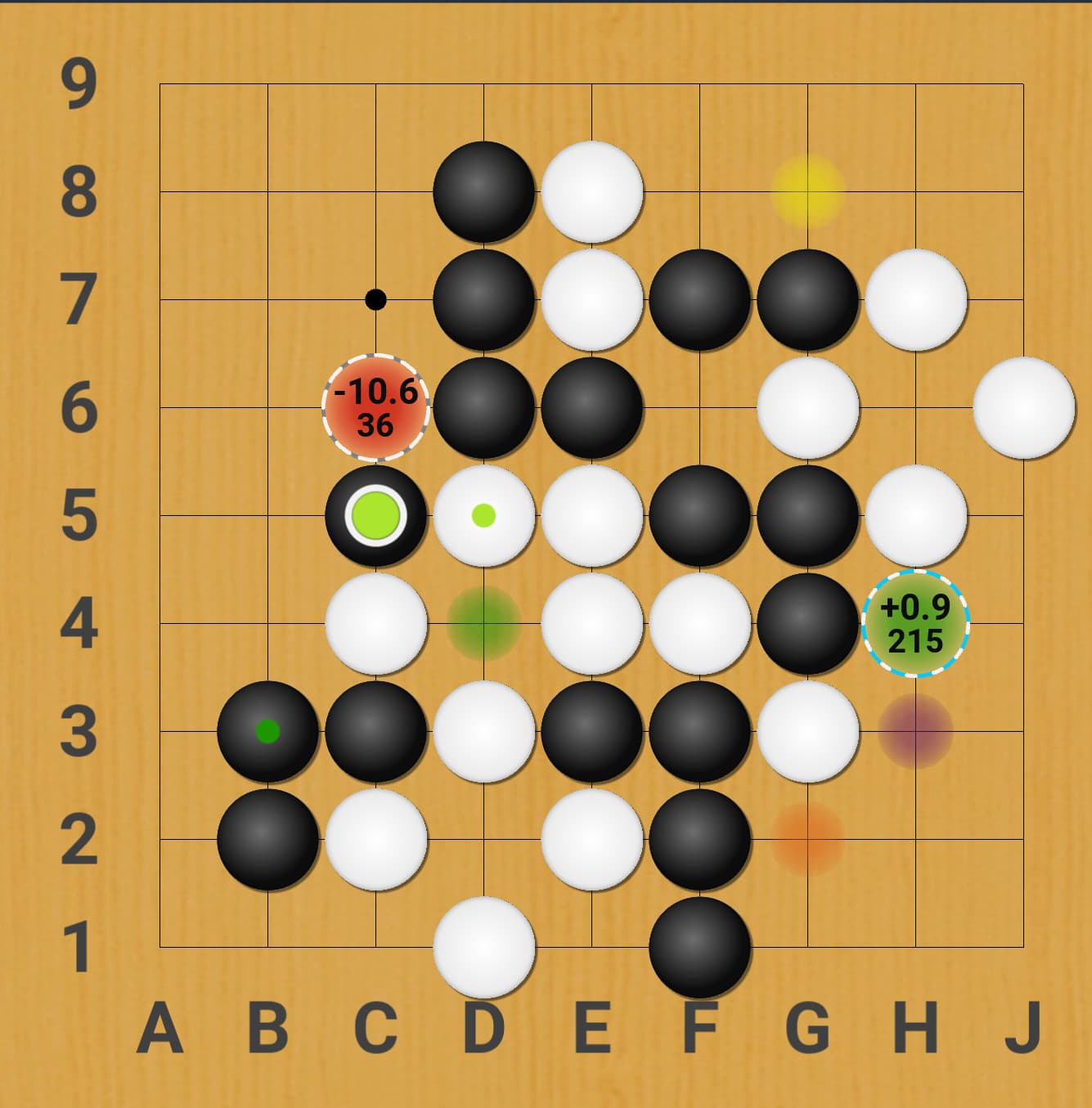 - Connect over distances. All these groups look at least decent, but Euroton only responds to losing liberties and 1 space cut/connect options. It doesn’t realise it’s slowly getting its groups cut off and surrounded.