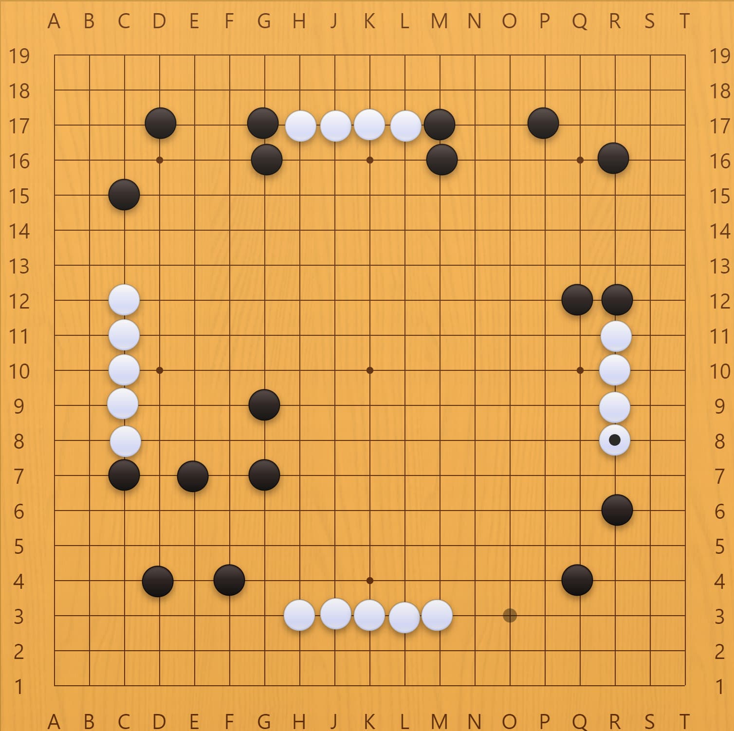 But now it will play 5 moves in one corner before moving on to the next. And black won this game.. So added some more rules: