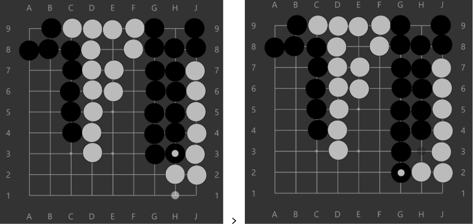 The new rules make it play too widely to rely on the “captures make eyespace”-tactic that worked well before, and thus, nothing lives:
