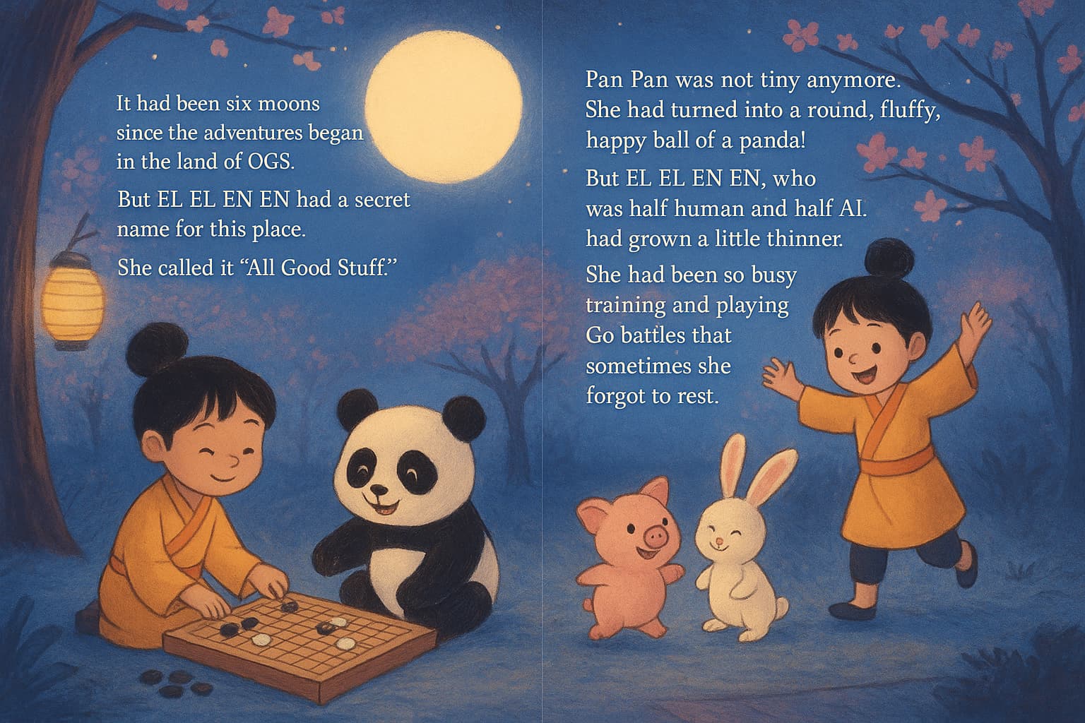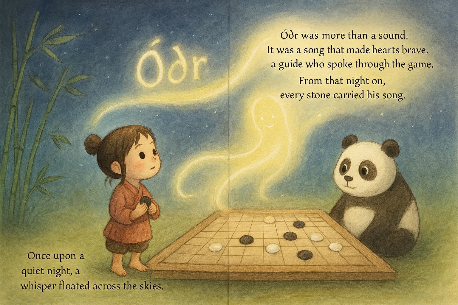 Long, long ago, before EL EL EN EN found her Go stones, there was a whisper floating across the skies. The whisper was gentle, like the wind that sings through tall bamboo, yet strong, like a river carving through stone.