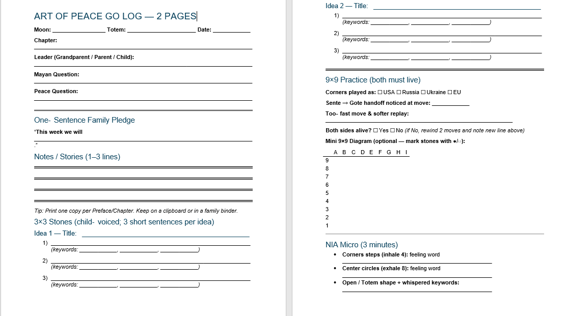(A Companion Art of Peace Log will be created in the next 24 hours, to accompany Art of Peace Book.)