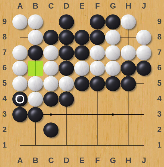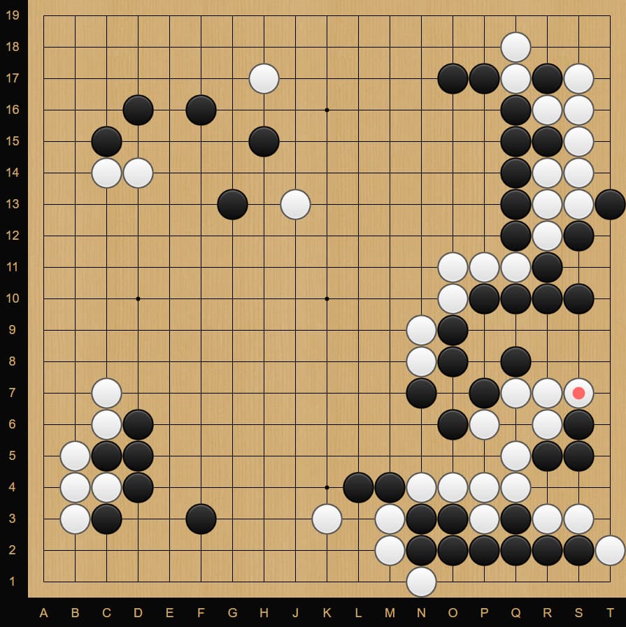 Because of the endgame ko at B3, Black played a ko threat at K4. White got greedy and replied at P7. Instead of taking back the ko, Black decided to punish Whiteâs answer. Five moves later, White resigns.
