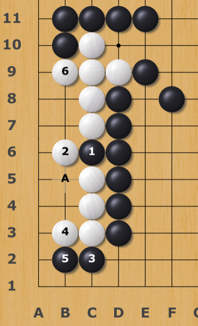 Because 5 is a sente, white shouldâve played A4 instead of 4