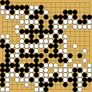 In the game, we played the textbook sequence and Black died. But I think Black should be able to live by threatening to connect to the two black stones on the South side.