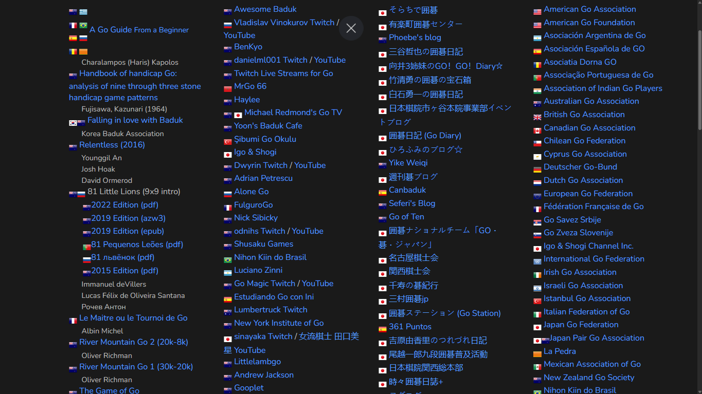 Some other dead links too, for example the “AGF store” under equipment has a 404 error, and the links for “A Game of Go pt. Ipt. II” under go music have been removed from the site they once were