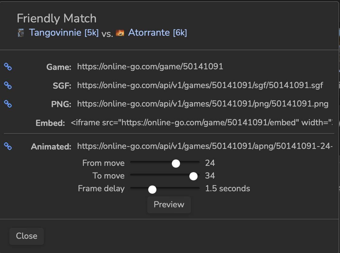 Similarly for games on player on OGS one can link the game