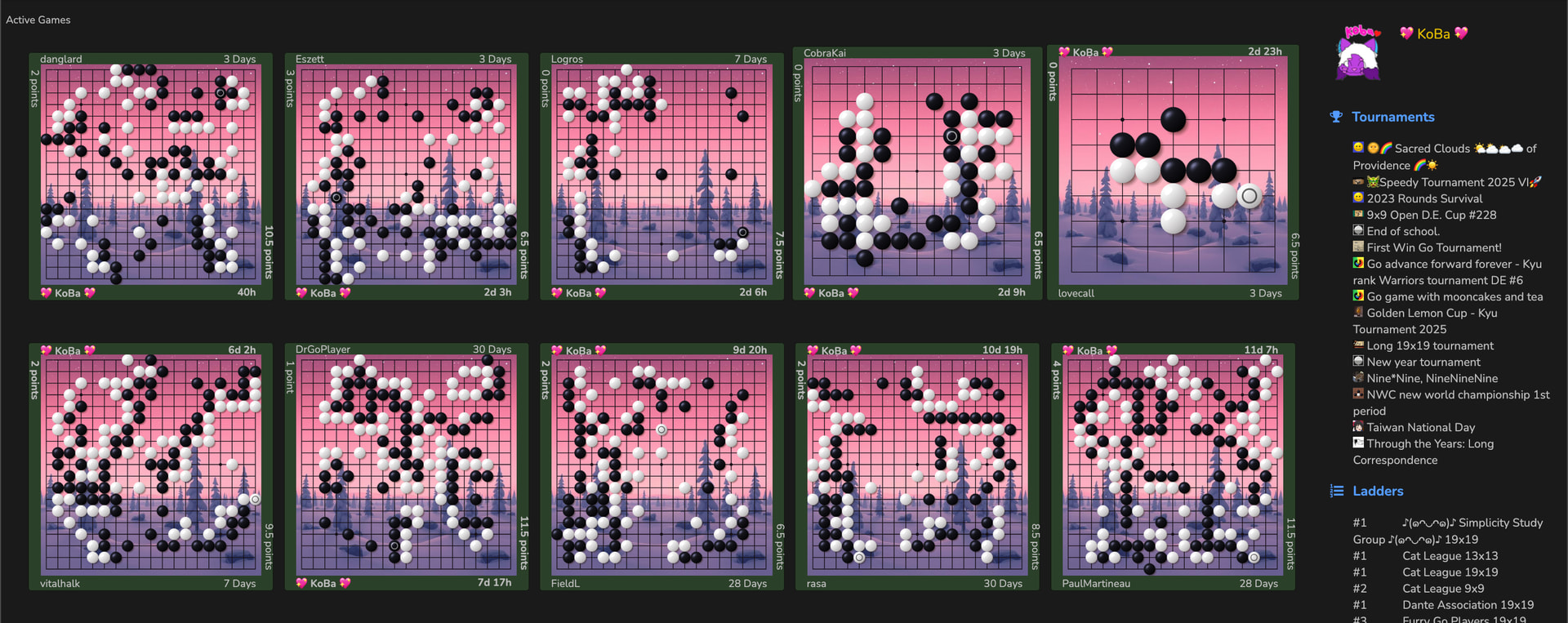 I’ve largely left KGS, but something I always liked about the CGoban client was the English Game Room front-and-center on login. Easy to say hi and chat with whoever was online before jumping into a game.