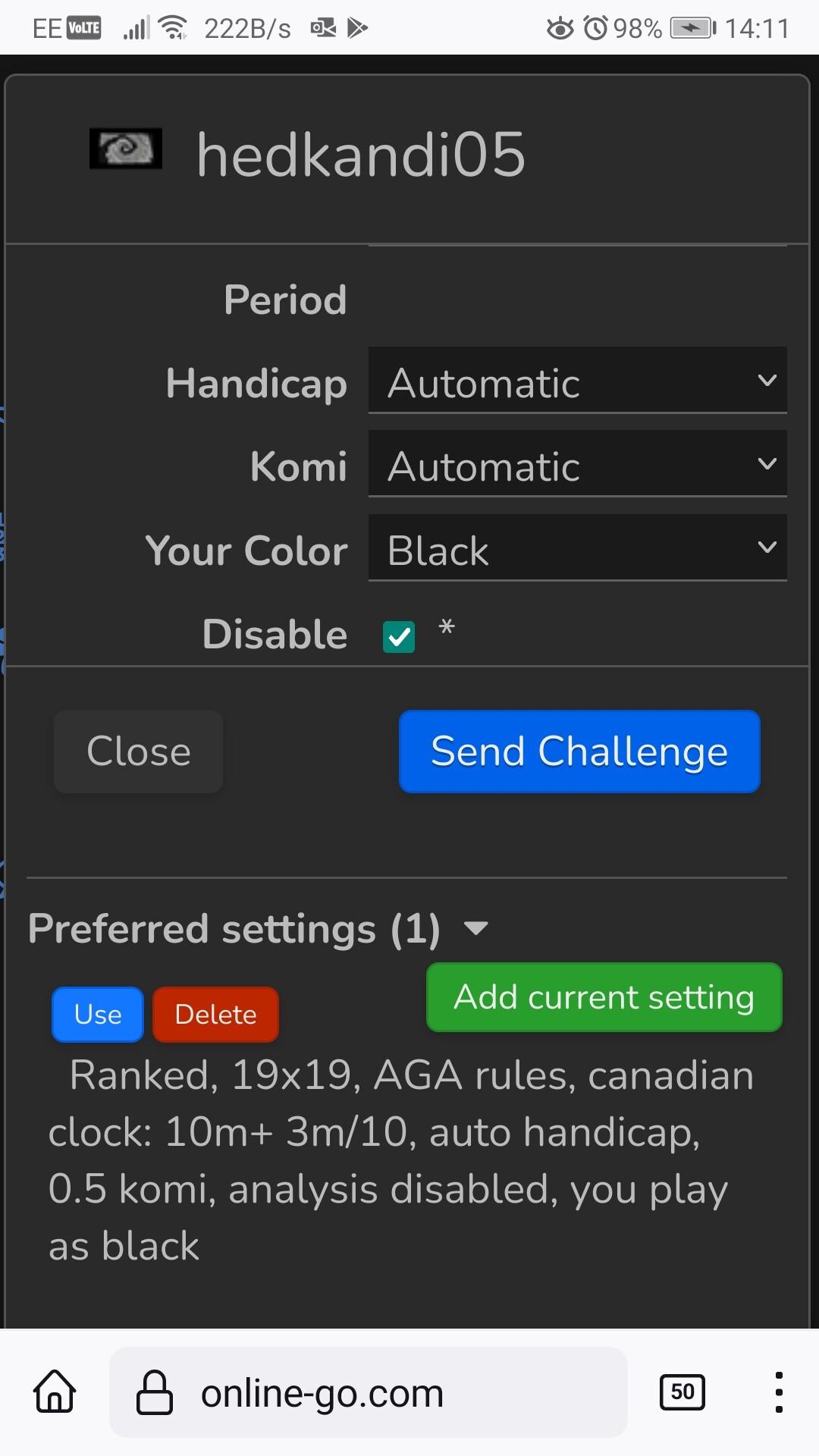 Btw, I carried out the test again and although saving current settings as a preferred setting caused the komi to change from automatic to 0.5, when I selected ‘Use’ the Komi remained as ‘automatic’. However, when I tried to extend the test and use a different, specific komi, I found that Custom komi was not allowed. I don’t understand why not.