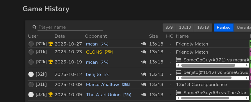 Currently I think the player’s rank before the game and the opponent’s current rank are shown, which is a strange mix.