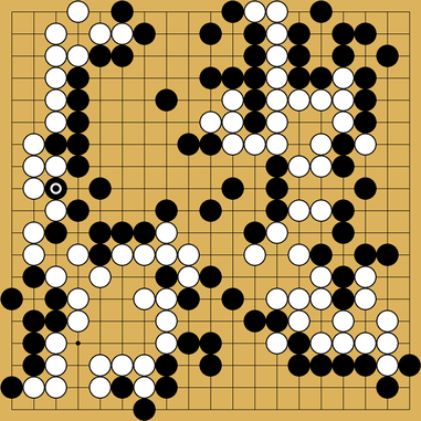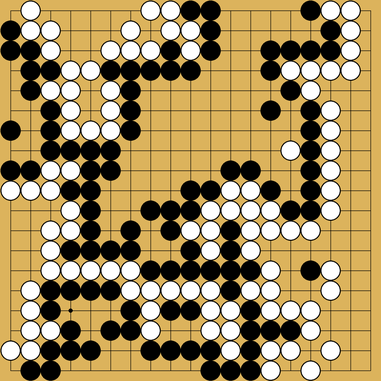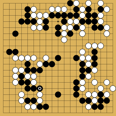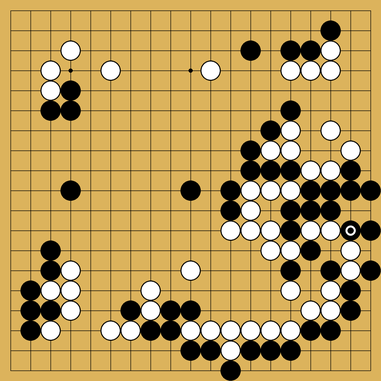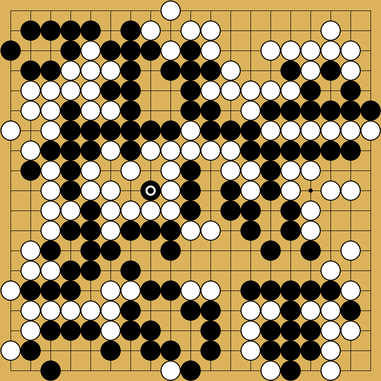 Black won game 4 by 8 points. Game 5 was much more complicated with a drawn-out endgame, and stayed even until move 319. The game ended with nine living groups on the board and black winning by 4 points. ![]()
