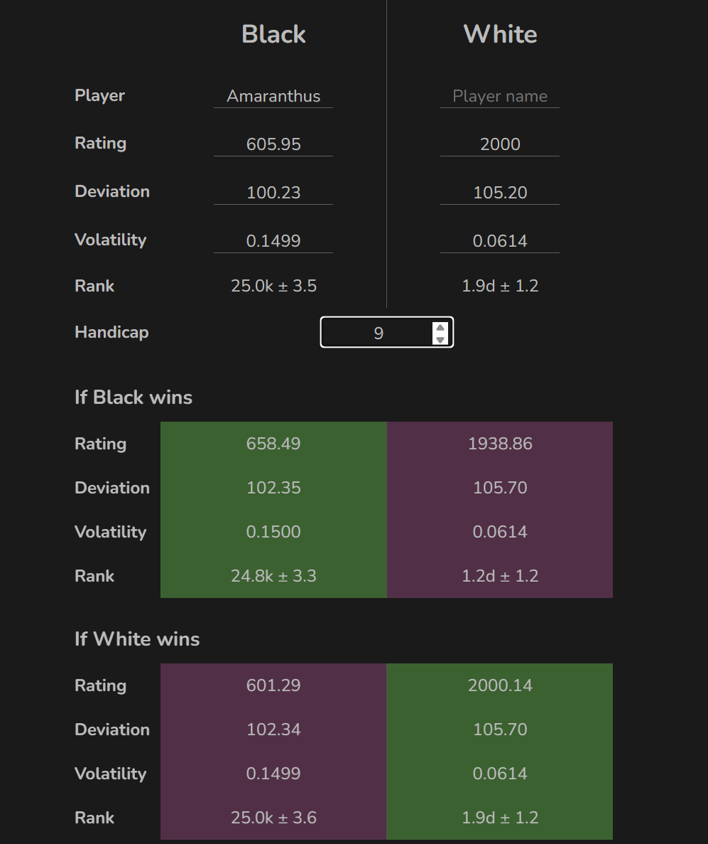 “how much rating should a dan victory over a 25k at 9 handicap deliver?”